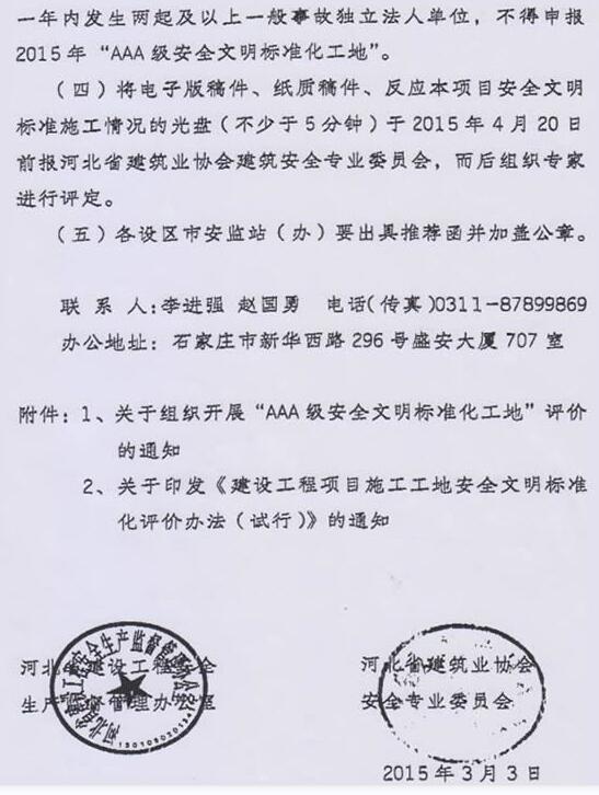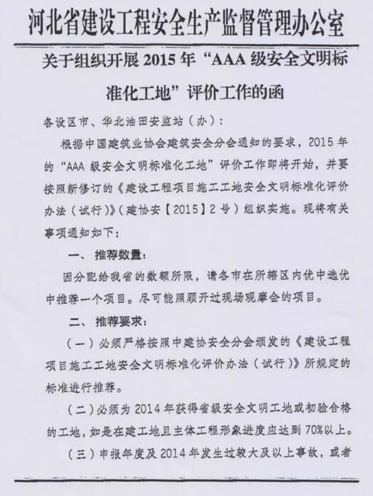 关于组织开展2015年“AAA级安全文明标准化工地”评价工作的函
