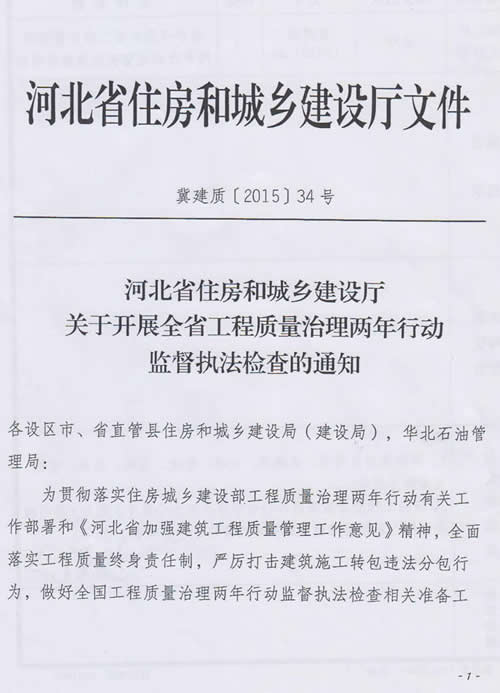 发文部门:河北省住房和城乡建设厅文件 发文文号:冀建质【2015】34号 发文时间:2015年04月30日