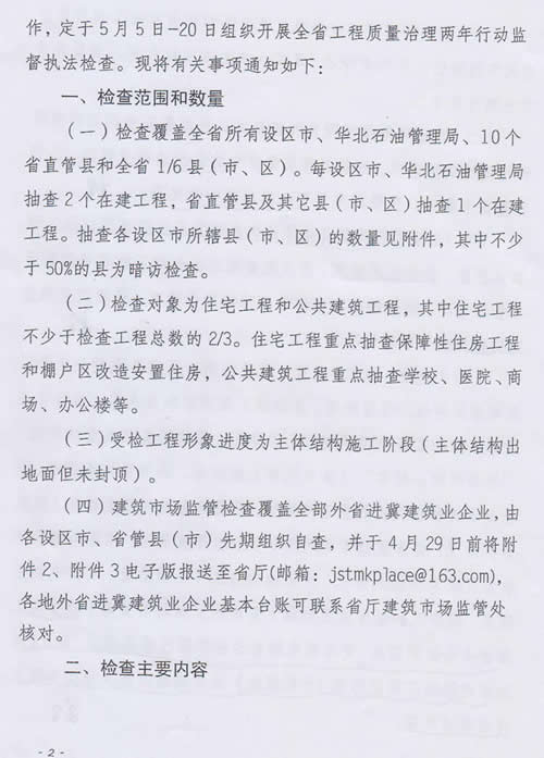 关于开展全省工程质量治理两年行动监督执法检查的通知