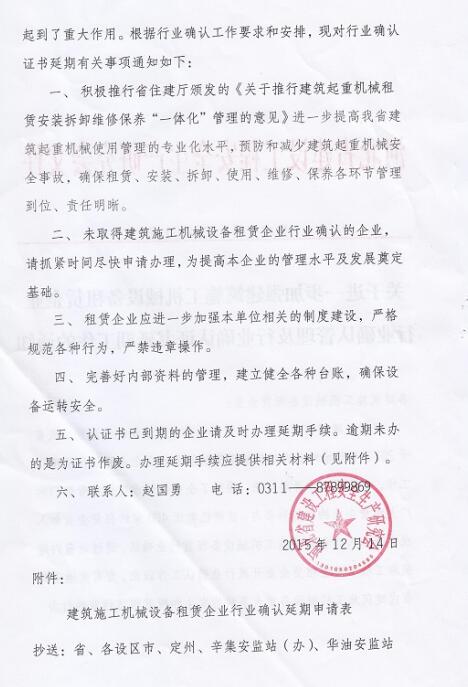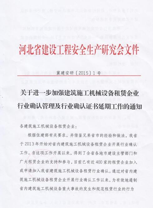 关于进一步加强建筑施工机械设备租赁企业行业确认管理及行业确认管理及行业确认证书延期工作的通知