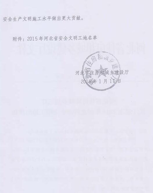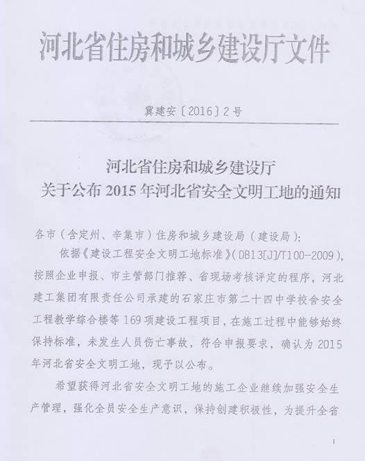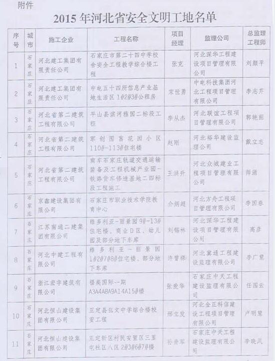 关于公布2015年河北省安全文明工地的通知