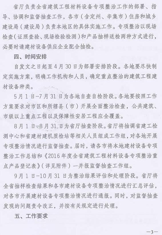 关于开展2016年度全省建筑工程材料设备专项整治工作的通知