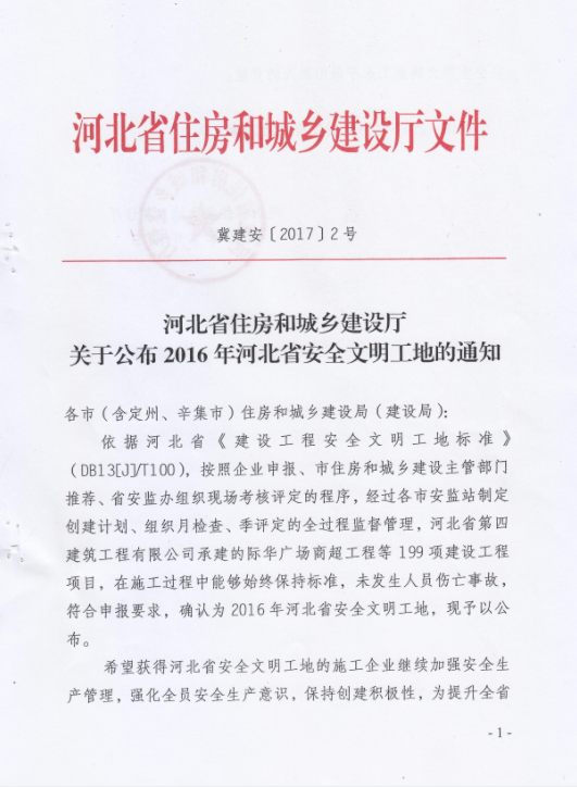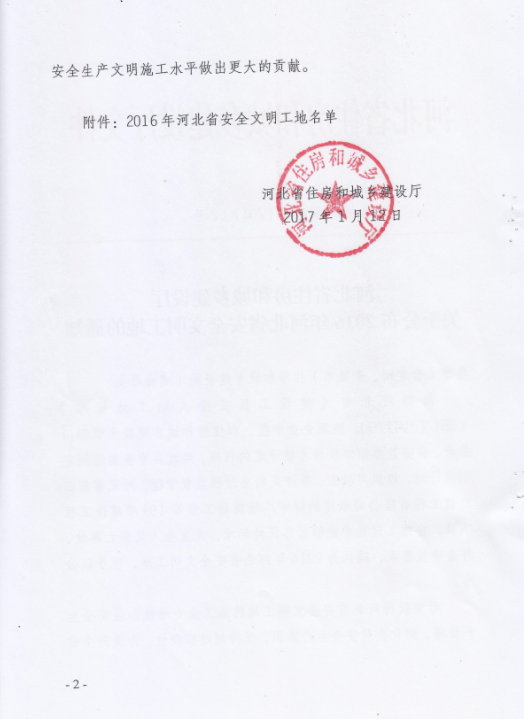 关于公布2016年河北省安全文明工地的通知